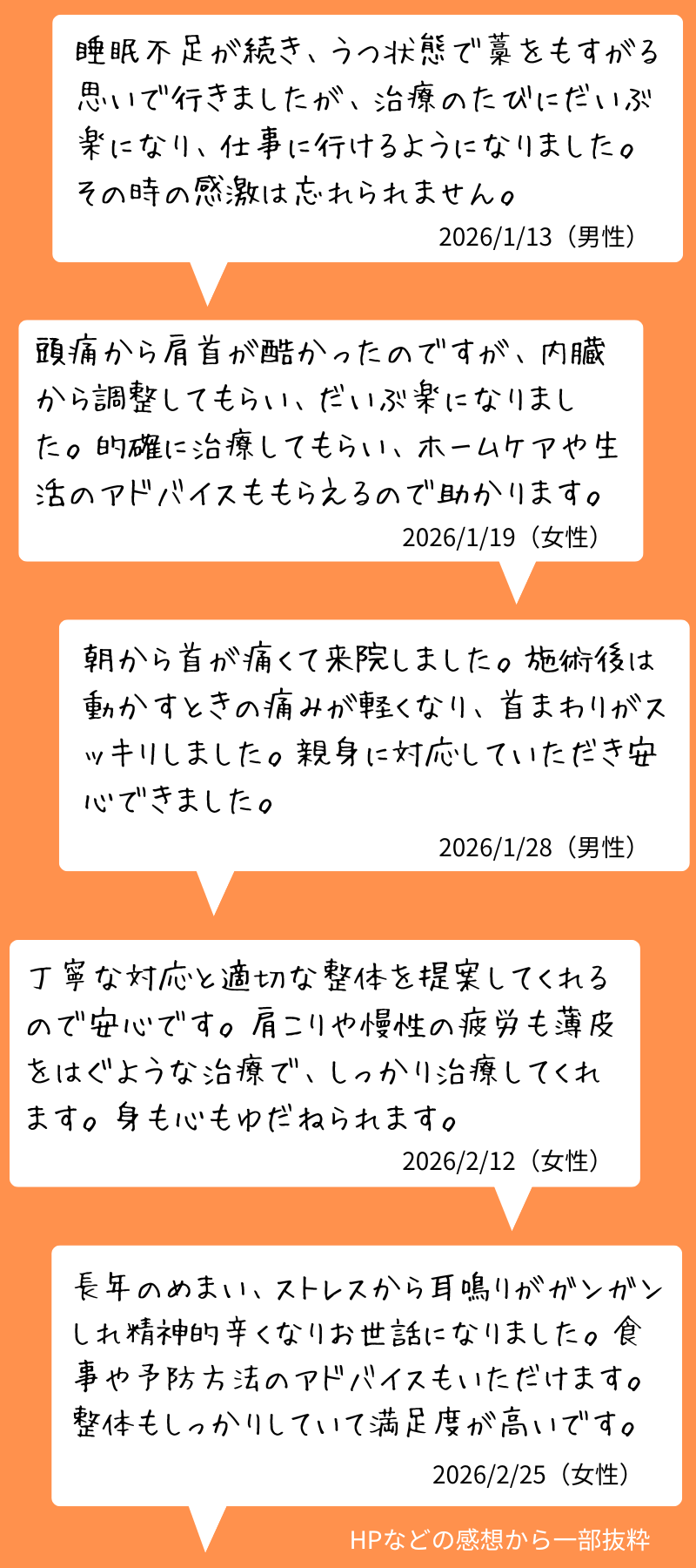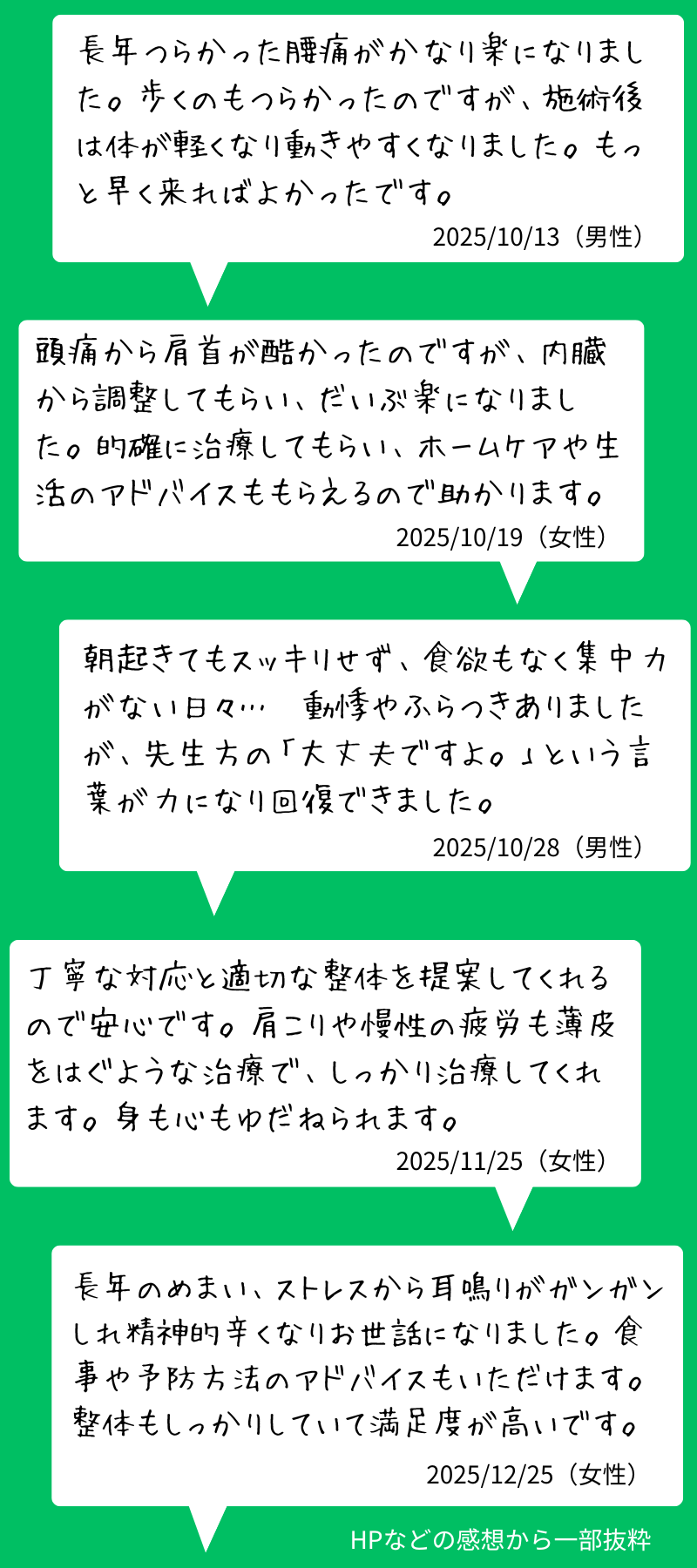 家からとても近く、母が一度行ってみたところ症状がすぐに改善されたときき、こちらに寄せていただきました。